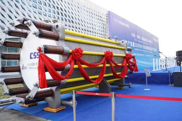 該裝備圍繞我國氫能高質(zhì)量發(fā)展重大需求,突破了大功率、高電密、寬負(fù)載、低電耗等多項(xiàng)前沿技術(shù),實(shí)現(xiàn)了單體產(chǎn)氫量由2000Nm3/h到3000Nm3/h的跨越,運(yùn)行電流密度提升17%,槽體重量降低13%,制氫系統(tǒng)具備30%-110%的動(dòng)態(tài)調(diào)節(jié)能力,能耗達(dá)到國標(biāo)一級(jí)能效標(biāo)準(zhǔn),可顯著提高單機(jī)產(chǎn)能、降低生產(chǎn)投入和運(yùn)行成本,為大規(guī)模綠氫制取提供了創(chuàng)新型解決方案。