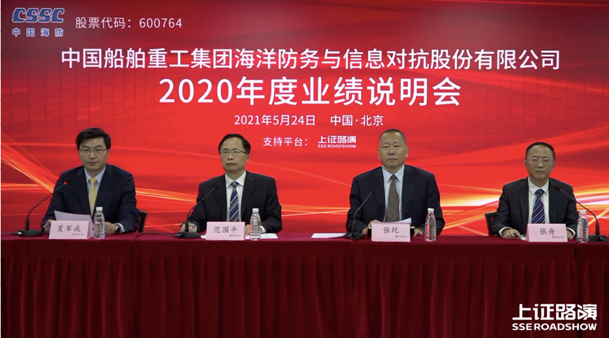 5月24日,中國船舶集團(tuán)旗下中國海防(600764.SH)召開2020年度業(yè)績說明會(huì),通過上證路演平臺(tái)視頻直播和網(wǎng)絡(luò)文字互動(dòng)的方式,與廣大投資者溝通交流。中國海防董事長及公司高管出席會(huì)議。