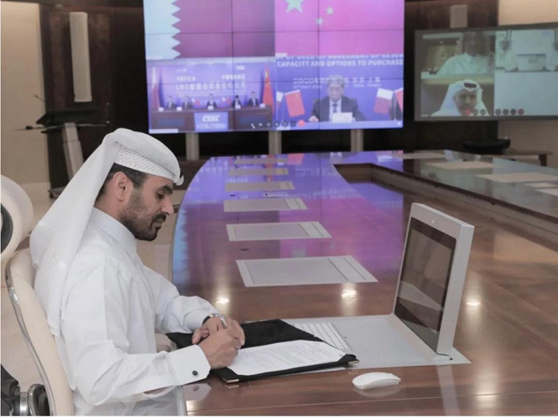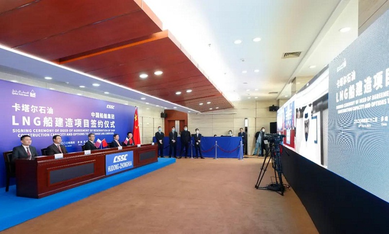 ????雖然全球疫情持續(xù)蔓延,但“一帶一路”建設(shè)的步伐并未停滯。4月22日,中國船舶集團(tuán)有限公司與卡塔爾石油公司在中國北京、上海及卡塔爾多哈三地以“云簽約”方式聯(lián)合簽署“中國船舶—卡塔爾石油液化天然氣(LNG)船建造項(xiàng)目”協(xié)議,所涉訂單總金額超過200億元人民幣。這是卡塔爾天然氣項(xiàng)目首批訂單,也是中國船企迄今承接的金額最大的造船出口訂單。中國船舶集團(tuán)董事長(zhǎng)雷凡培、卡塔爾能源事務(wù)部長(zhǎng)兼卡塔爾石油總裁薩阿德?謝里達(dá)?阿爾卡比出席簽約儀式并分別代表雙方在協(xié)議文本上簽字,中國船舶集團(tuán)副總經(jīng)理孫偉主持簽約儀式,卡塔爾天然氣公司首席執(zhí)行官卡利德?阿爾?塞尼、卡塔爾石油商務(wù)開發(fā)執(zhí)行副總裁賈西姆?阿爾馬拉祖齊等出席簽約儀式。