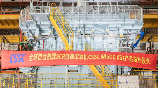7月22日,由中國(guó)船舶集團(tuán)有限公司旗下中船動(dòng)力(集團(tuán))有限公司自主研發(fā)、大連船用柴油機(jī)有限公司建造的全球首臺(tái)機(jī)載SCR(選擇性催化還原系統(tǒng))船用低速機(jī)CSSC WinGD X52正式向全球發(fā)布。工信部黨組成員、總工程師田玉龍,中國(guó)船舶集團(tuán)黨組副書(shū)記、總經(jīng)理?xiàng)罱鸪沙鱿l(fā)布儀式并講話。國(guó)家相關(guān)部委、地方政府、船級(jí)社、航運(yùn)公司、造船企業(yè)等相關(guān)領(lǐng)導(dǎo)和專家出席發(fā)布儀式。