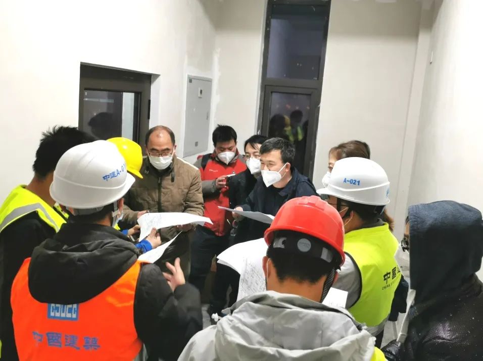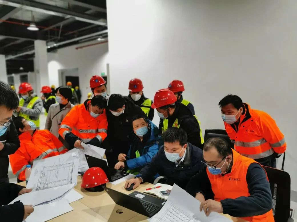中船九院公司領導帶領項目團隊連續(xù)多日通宵在現場工作,及時協(xié)調工地各種情況,與集團公司相關部門并肩作戰(zhàn)、及時溝通,提高工作效能;同時堅持實時優(yōu)化設計,協(xié)調工程建設。項目設計負責人、中船九院副總建筑師王川第一時間組織團隊明確職責分工,確定了現場設計、后方設計、現場管理、外場支持等多專業(yè)協(xié)同配合機制,確保多條線同時作戰(zhàn)、運作高效??偣こ處燑S延驅車前往長興島專送工程保障設備,長興島實行“只進不出”,他就直接加入現場設計團隊,10天沒有下島。設計團隊中三位女設計師沈清清、胡雁、沈峻,更是巾幗不讓須眉,創(chuàng)造性地解決了暖風系統(tǒng)設計等一系列難題,堅守一線直到項目最終交付。項目管理團隊的戴鳳波、徐詠春、欒海林、王后軍、屈杰、倪冬輝等人把現場當作家,3天只在賓館住了3個小時,其余時間都在車上、辦公桌上度過。項目部顧建章、汪凱則協(xié)調運輸通行資源,解決了建設期間工程人員的基本飲食問題。與此同時,還有更多的人在后方作戰(zhàn)斗支撐,中船九院建筑一院院長曾志堅迅速組織本部設計團隊,緊急將居家辦公的相關專業(yè)骨干召回,組成了包括張瓊、瞿駸、郭鳳群、李嘯、蔣斌等18名骨干在內,建筑、結構、水、電、風、經濟各專業(yè)齊全的團隊。之后因項目需要,胡雁、瞿革、瞿駸上島加入現場設計團隊。