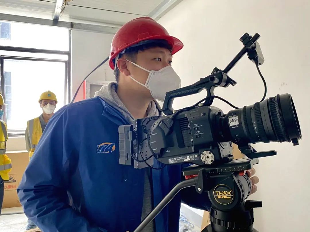 聲像保障第一時間到位。七一四所青年突擊隊員潘偉、張浩偉抵達當晚便投入到拍攝工作中。面對上百個工作面、數千位建筑工人,潘偉、張浩偉發(fā)揚敢打敢拼的戰(zhàn)斗精神,在現場架設了8個機位、2架無人機同時進行拍攝。有時為了找到一個合適拍攝角度,兩人克服恐懼在高達八米的屋頂架設拍攝機位,為工程建設拍攝下了近百份寶貴的聲像資料。