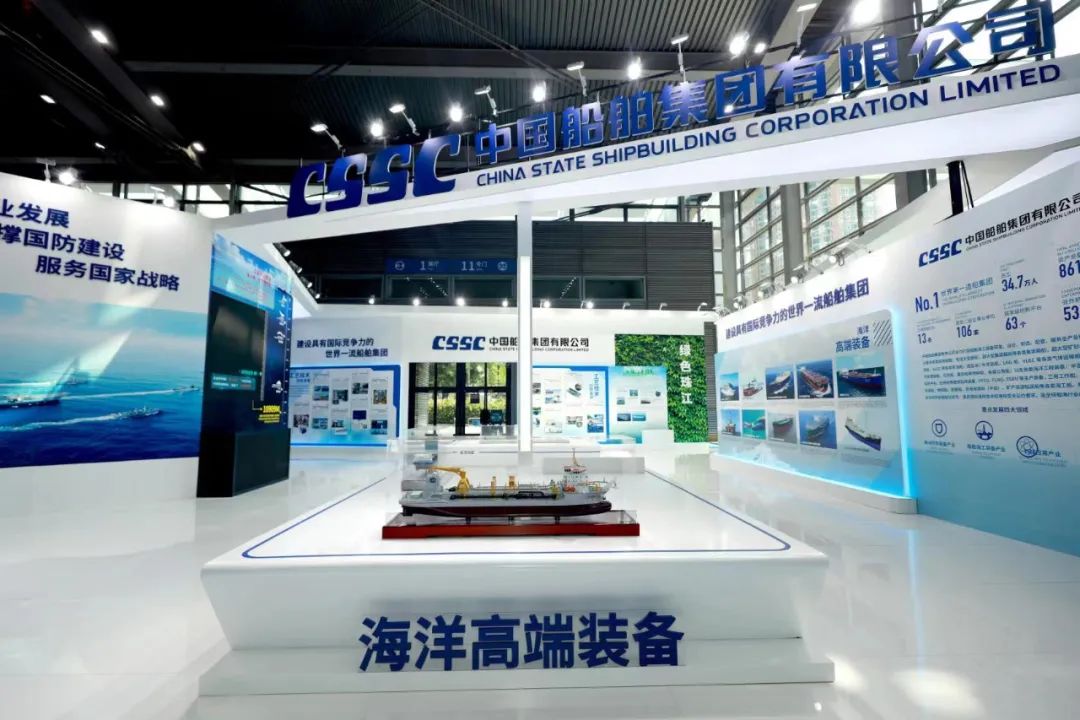 在大會(huì)的展示環(huán)節(jié),中國船舶集團(tuán)展臺(tái)通過集團(tuán)總體、海洋防務(wù)、海洋高端裝備、工藝技術(shù)創(chuàng)新發(fā)展、海洋經(jīng)濟(jì)新業(yè)態(tài)、工匠風(fēng)采、“奮斗者”號、綠色珠江八個(gè)板塊,分別展出了7500立方米液態(tài)二氧化碳運(yùn)輸船、半潛式全自動(dòng)現(xiàn)代化三文魚深海養(yǎng)殖裝備、合金鋼中間軸在大型油船上的首次應(yīng)用等55項(xiàng)創(chuàng)新成果,并展示了28位工匠代表的風(fēng)采。集團(tuán)公司展臺(tái)采用開放、通透的布局,突出中國船舶品牌元素,集中展示集團(tuán)公司立足新發(fā)展階段,貫徹新發(fā)展理念,在戰(zhàn)略重組后以高質(zhì)量發(fā)展為主題,壯大主業(yè)實(shí)業(yè)、加快推動(dòng)船海產(chǎn)業(yè)向中高端轉(zhuǎn)型發(fā)展,以及大力弘揚(yáng)軍工精神和勞模精神、勞動(dòng)精神、工匠精神,強(qiáng)化自主創(chuàng)新的整體實(shí)力和在推動(dòng)低碳環(huán)保、區(qū)域經(jīng)濟(jì)發(fā)展等方面的最新成果。集團(tuán)公司還通過本屆大會(huì)“互聯(lián)網(wǎng)+展會(huì)”模式開設(shè)的“云展會(huì)”,讓參觀者線上云游中國船舶展臺(tái),擴(kuò)大企業(yè)品牌影響力。