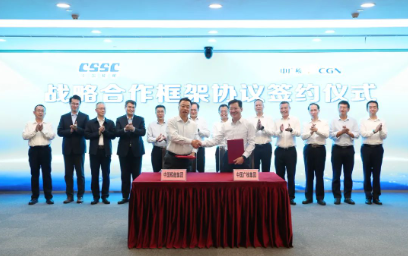 11月3日,中國船舶集團有限公司與中國廣核集團有限公司在上海簽訂戰(zhàn)略合作協(xié)議。中國船舶集團黨組副書記、總經(jīng)理楊金成,中廣核黨委副書記、總經(jīng)理高立剛出席簽約儀式。中國船舶集團黨組成員、副總經(jīng)理盛紀綱,中廣核黨委常委、副總經(jīng)理龐松濤分別代表雙方在協(xié)議上簽字。簽約前,雙方觀看了兩家企業(yè)宣傳片,并就進一步加強溝通交流、深化多領域合作進行了深入探討。