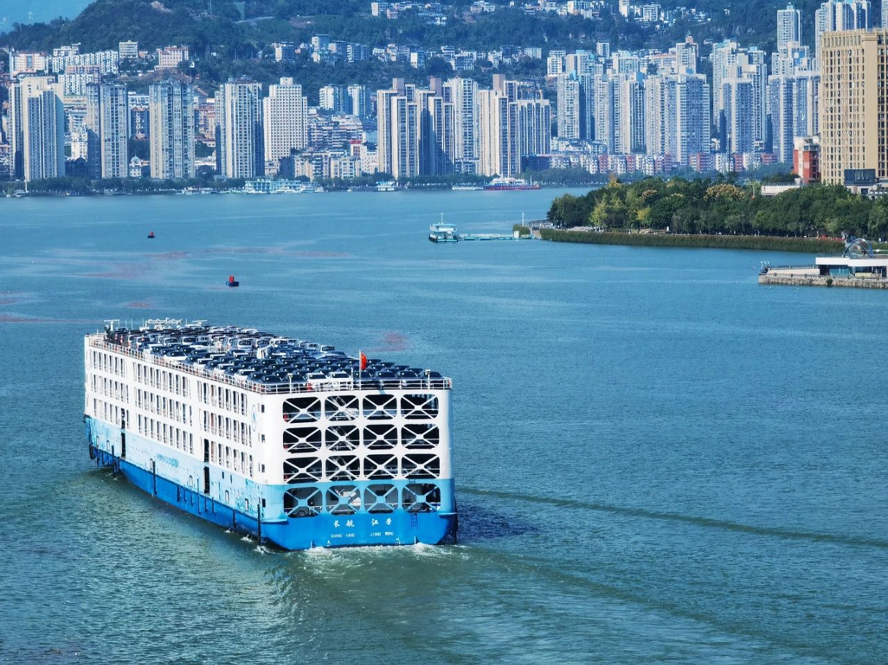 長(zhǎng)江三峽庫(kù)區(qū)蓄水后的萬(wàn)州,各種船只或??炕蚪?jīng)過(guò),盡顯城市的繁忙又不失江城之美。