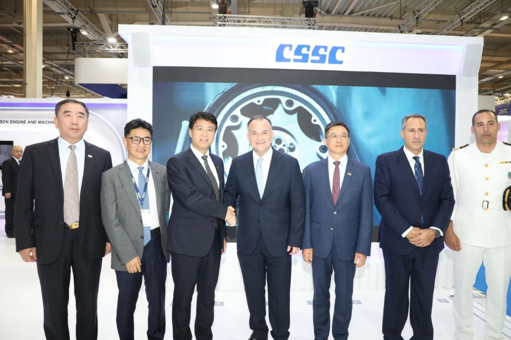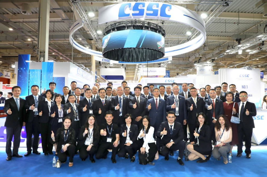 此次展會,中國船舶集團攜旗下19家成員單位參展,有關(guān)成員單位負責人率隊赴展會開展重點船海項目經(jīng)營洽談并拜訪當?shù)睾椭苓厙铱蛻?。集團公司以“共贏未來”為參展主題,設置集團總體區(qū)、綠色航運解決方案區(qū)、低碳環(huán)保配套設備區(qū)共3個展示區(qū)域,重點展示了135500總噸大型郵輪、175000方LNG運輸船、24000箱超大型集裝箱船、210000噸氨燃料散貨船、LNG雙燃料VLCC等一系列高技術(shù)、高附加值明星產(chǎn)品,以及CPGC-WinGD 10X92DF-M甲醇雙燃料發(fā)動機、船用碳捕捉系統(tǒng)等全球船東高度關(guān)注的綠色低碳配套設備。同時,通過展臺上醒目的品牌標識、層級化的品牌體系圖、富有感染力的品牌推介視頻,首次面向全球客戶,立體化展示“中國船舶”品牌及下屬企業(yè)品牌和產(chǎn)品品牌體系,進一步強化了集團公司品牌形象。