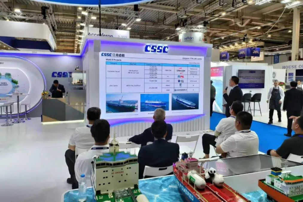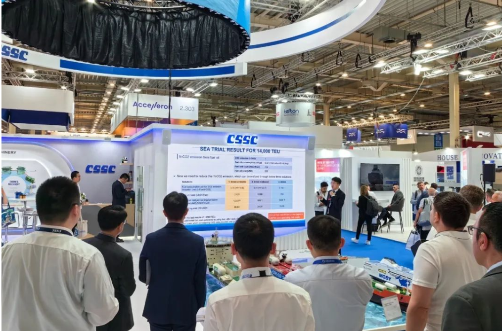 展會期間促成集團公司多家成員單位船海項目成功簽約,共計超50億元人民幣,包括中船貿(mào)易、廣船國際與EPS公司4艘11萬噸LRII型LNG雙燃料油輪項目簽約、與ASP公司2艘5萬噸MR甲醇雙燃料油輪項目簽約,中船貿(mào)易、大連造船與CAPITAL公司2艘30萬噸VLCC建造項目簽約,另外還簽訂了40多億元新造船項目意向書;同時,參展成員單位在集團公司展臺上開展了豐富的推介活動,包括江南造船“綠色船型家族”產(chǎn)品推介會、中船系統(tǒng)院“羅經(jīng)進入光纖時代”產(chǎn)品推介會、七一一所“全球首個全流程船用碳捕捉系統(tǒng)案例分享會”,吸引了眾多國際船東、船級社和設備廠商前來觀摩,并共同探討未來合作機遇。
