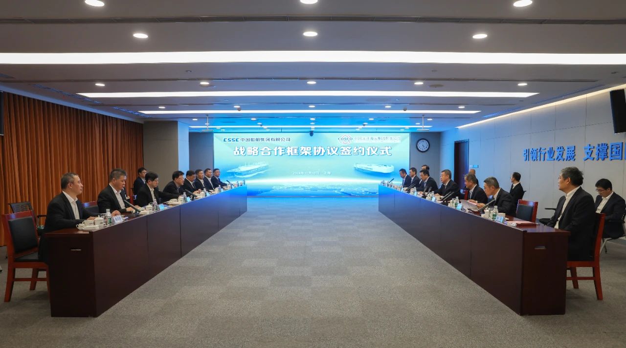 10月15日,中國船舶集團(tuán)有限公司與中國遠(yuǎn)洋海運(yùn)集團(tuán)有限公司在上海簽訂戰(zhàn)略合作框架協(xié)議。中國船舶集團(tuán)黨組書記、董事長溫剛,中遠(yuǎn)海運(yùn)集團(tuán)黨組書記、董事長萬敏,黨組副書記、總經(jīng)理朱碧新出席簽約儀式。中國船舶集團(tuán)黨組成員、副總經(jīng)理盛紀(jì)綱,紀(jì)檢監(jiān)察組組長、黨組成員彭宏,中遠(yuǎn)海運(yùn)集團(tuán)黨組成員、副總經(jīng)理、總會計(jì)師孫云飛出席簽約儀式。盛紀(jì)綱和孫云飛分別代表雙方在協(xié)議上簽字。簽約前,雙方就進(jìn)一步加強(qiáng)溝通交流、深化多領(lǐng)域合作進(jìn)行了交流探討。
