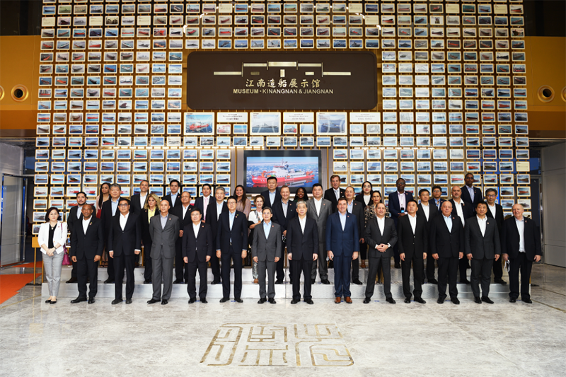 9月15日,在中國(guó)外交部副部長(zhǎng)鄭澤光、中國(guó)船舶集團(tuán)董事長(zhǎng)雷凡培的陪同下,以烏拉圭駐華大使盧格里斯為團(tuán)長(zhǎng)的拉美和加勒比地區(qū)18個(gè)國(guó)家駐華使節(jié)代表團(tuán)到中國(guó)船舶集團(tuán)旗下上海長(zhǎng)興造船基地參觀考察。中國(guó)船舶集團(tuán)副總經(jīng)理孫偉、姜仁鋒參加活動(dòng)。