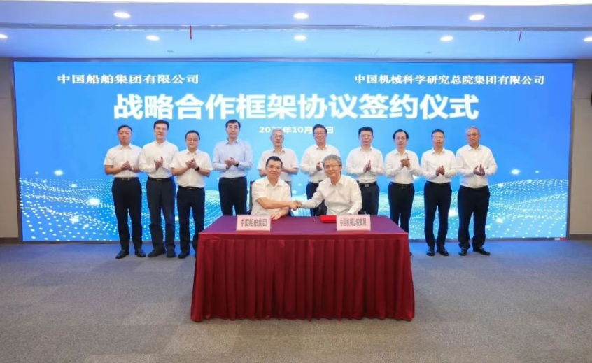 10月17日,中國(guó)船舶集團(tuán)有限公司與中國(guó)機(jī)械科學(xué)總院集團(tuán)有限公司在上海簽署戰(zhàn)略合作框架協(xié)議。中船集團(tuán)黨組書(shū)記、董事長(zhǎng)徐鵬,中國(guó)機(jī)械總院黨委書(shū)記、董事長(zhǎng)王德成出席簽約儀式。中船集團(tuán)黨組成員、副總經(jīng)理彭原璞,中國(guó)機(jī)械總院集團(tuán)副總經(jīng)理姜超分別代表雙方在協(xié)議上簽字。簽約前,雙方就進(jìn)一步加強(qiáng)溝通交流、深化多領(lǐng)域合作進(jìn)行了交流探討。
