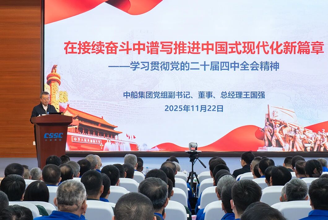 黨組成員在宣講會上強調(diào),學習好貫徹好黨的二十屆四中全會精神是當前和今后一個時期的重大政治任務。要更加緊密地團結(jié)在以習近平同志為核心的黨中央周圍,全面貫徹習近平新時代中國特色社會主義思想,把思想和行動統(tǒng)一到黨中央對形勢的科學判斷和決策部署上來,狠抓各項工作落實。要堅持創(chuàng)新驅(qū)動,抓住新一輪科技革命和產(chǎn)業(yè)變革歷史機遇,加快推進高水平科技自立自強;要加快提質(zhì)升級,堅持智能化、綠色化、融合化方向,爭當建設現(xiàn)代化產(chǎn)業(yè)體系的排頭兵;要全面深化改革,進一步解決制約高質(zhì)量發(fā)展的卡點堵點問題,持續(xù)增強發(fā)展動力和活力;要強化根魂優(yōu)勢,堅持和加強黨的領導、黨的建設,以高質(zhì)量黨建引領保障高質(zhì)量發(fā)展,確保2025年和“十四五”規(guī)劃目標任務完成、“十五五”良好開局,為以中國式現(xiàn)代化全面推進強國建設、民族復興偉業(yè)貢獻中船力量。