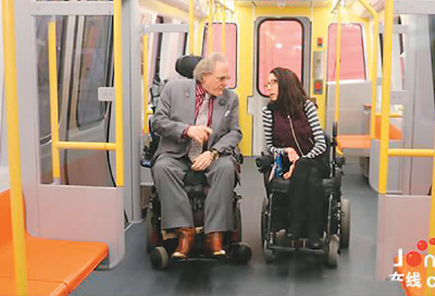 “現(xiàn)在,平生第一次,我不再需要?jiǎng)e人幫我進(jìn)到車廂里了。這種獨(dú)立性對(duì)我來講至關(guān)重要?!瘪R薩諸塞州波士頓地鐵老乘客懷特先生坐著輪椅在車廂里溜達(dá)了一圈,對(duì)地鐵新車充滿期待。當(dāng)?shù)貢r(shí)間4月3日,在美國波士頓舉行的橙線地鐵模型車首次展出活動(dòng)上,美國民眾感受了來自中國的地鐵車廂。更寬敞、美觀,設(shè)計(jì)更加人性化,讓美國民眾為之點(diǎn)贊。“車廂內(nèi)外側(cè)都有專門的按鈕,可以讓坐在輪椅里的人在上、下車的時(shí)候直接啟動(dòng)車廂底部的專用輪椅車平板,通行完全無障礙?!睉烟叵壬f。