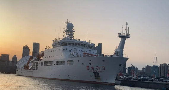 “東方紅3”號是我國自主創(chuàng)新研發(fā)的新一代深海大洋綜合科學(xué)考察實習(xí)船,2013年由教育部立項建設(shè),2019年6月交付使用,是國內(nèi)首艘、國際上第四艘獲得DNV GL簽發(fā)的船舶水下輻射噪聲最高等級——靜音科考級(SILENT-R)證書的海洋綜合科考船,也是世界上獲得這一等級證書排水量最大的海洋綜合科考船。