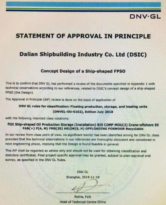 ????11月20日,大船集團在總部舉行了“15.5萬噸穿梭油船”和“通用型FPSO”設(shè)計AIP證書頒發(fā)儀式,兩型新產(chǎn)品獲得DNV·GL原則性認可。