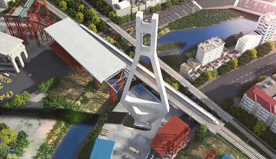 ????為保障安全,項(xiàng)目部經(jīng)過(guò)多輪論證,決定使用世界首創(chuàng)的“水平二次轉(zhuǎn)體”施工工藝——即在原計(jì)劃的“塔梁共轉(zhuǎn)”常規(guī)轉(zhuǎn)體施工之前,增加一次“獨(dú)塔單轉(zhuǎn)”。