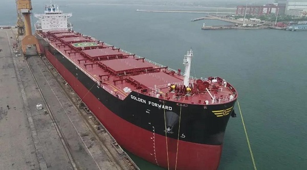 6月11日,由中國(guó)船舶集團(tuán)旗下大船集團(tuán)山船重工建造,中船貿(mào)易作為聯(lián)合賣(mài)方,為挪威Frontline公司打造的8.2萬(wàn)噸散貨船“GOLDEN FORWARD”號(hào)交付離廠。