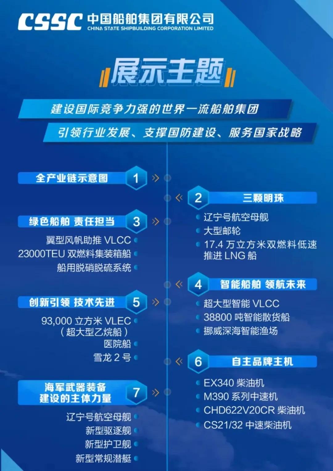 船舶海工裝備產(chǎn)業(yè)展區(qū) 分為船舶與海洋工程、船舶配套2個(gè)大區(qū),整體展示了中國(guó)船舶集團(tuán)強(qiáng)大的船舶建造能力。船舶與海洋工程分為海洋運(yùn)輸與工程裝備,海洋資源開發(fā)、海洋科考裝備,海洋漁業(yè),新開發(fā)船型與船舶改裝等六大板塊;船舶配套區(qū)包括動(dòng)力與配套、機(jī)電裝備和電子信息裝備3大部分,共展出模型及實(shí)物68個(gè),重點(diǎn)聚焦自主品牌、系列化產(chǎn)品及國(guó)際領(lǐng)先產(chǎn)品,展示了中國(guó)船舶集團(tuán)在業(yè)界最為完整齊全的船舶動(dòng)力機(jī)電配套產(chǎn)業(yè)鏈,具備提供穩(wěn)定、可靠的全動(dòng)力和配套解決方案的能力。