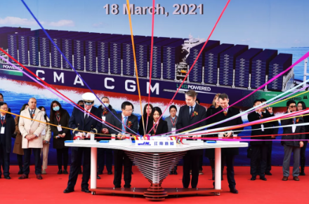 3月18日,中國(guó)船舶集團(tuán)旗下江南造船和中船貿(mào)易作為聯(lián)合賣(mài)方為法國(guó)達(dá)飛集團(tuán)建造七〇八所研發(fā)設(shè)計(jì)的23000TEU超大型雙燃料集裝箱船“達(dá)飛·蒙馬特”號(hào)正式命名交付?!斑_(dá)飛·蒙馬特”號(hào)是9艘船中的第六艘,也是江南造船建造交付的第三艘。該船的順利交付,為當(dāng)前繁忙的國(guó)際航運(yùn)市場(chǎng)注入新活力的同時(shí),也將進(jìn)一步壯大達(dá)飛海運(yùn)的運(yùn)輸力量,具有重要里程碑意義。