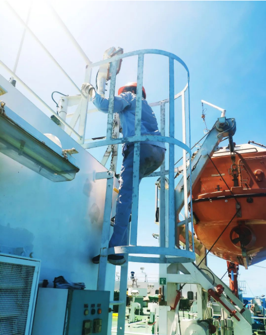 三伏天的太陽(yáng)把船舶甲板曬得滾燙,鋼板溫度近70度,在甲板上工作的員工無(wú)法躲避強(qiáng)光與熱浪,只能如此進(jìn)行物理降溫。