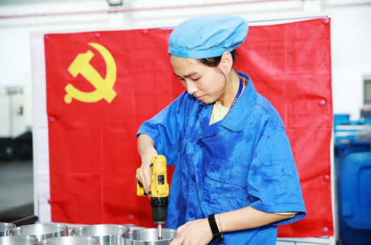 七二六所車(chē)間,在黨旗的輝映下,機(jī)加工車(chē)間,鉗床組張師傅正在緊張地加工零件和毛刺修整,早已顧不上汗水的洗禮。