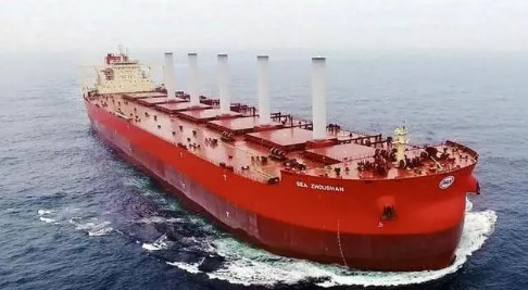 2021年,由上海船院設計的32.5萬噸超大型礦砂船交付。該船是世界上首艘配備轉(zhuǎn)筒帆的礦砂船,安裝了5臺轉(zhuǎn)筒帆,將使能效提高多達8%,每年由此可減排多達3400噸二氧化碳當量。