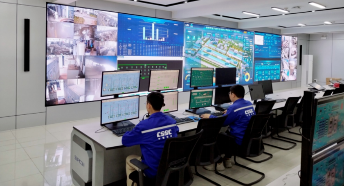 信息賦能,生產(chǎn)與數(shù)字技術(shù)深度融合。建立兩級運營指揮中心,重要產(chǎn)線現(xiàn)場實時監(jiān)控,關(guān)鍵經(jīng)濟(jì)指標(biāo)及時更新;水處理產(chǎn)業(yè)建成船舶配套領(lǐng)域首個智能工廠,風(fēng)電產(chǎn)業(yè)打造成具有行業(yè)特色成型智能制造車間。