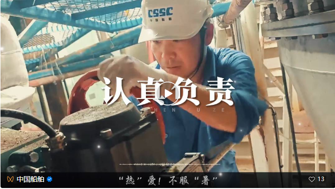 中船發(fā)動機(jī)——調(diào)試人員頂著高溫在認(rèn)真安裝傳感器,汗水濕透了衣裳。