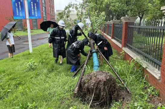 9月16日10點(diǎn)左右,七一一所莘莊、復(fù)興島、浦江鎮(zhèn)園區(qū)開啟“狂風(fēng)暴雨”模式。年逾60的大松樹未能抵擋住風(fēng)雨肆虐,倒下了,冷卻塔、窗戶、室外暫存設(shè)備均受到了不同程度的損壞。各園區(qū)防汛防臺(tái)帶班領(lǐng)導(dǎo),在連續(xù)值班20多小時(shí)的情況下,迅速集結(jié)值班人員開展現(xiàn)場(chǎng)損失確認(rèn)及修復(fù)工作,用心守護(hù)了園區(qū)的安全。