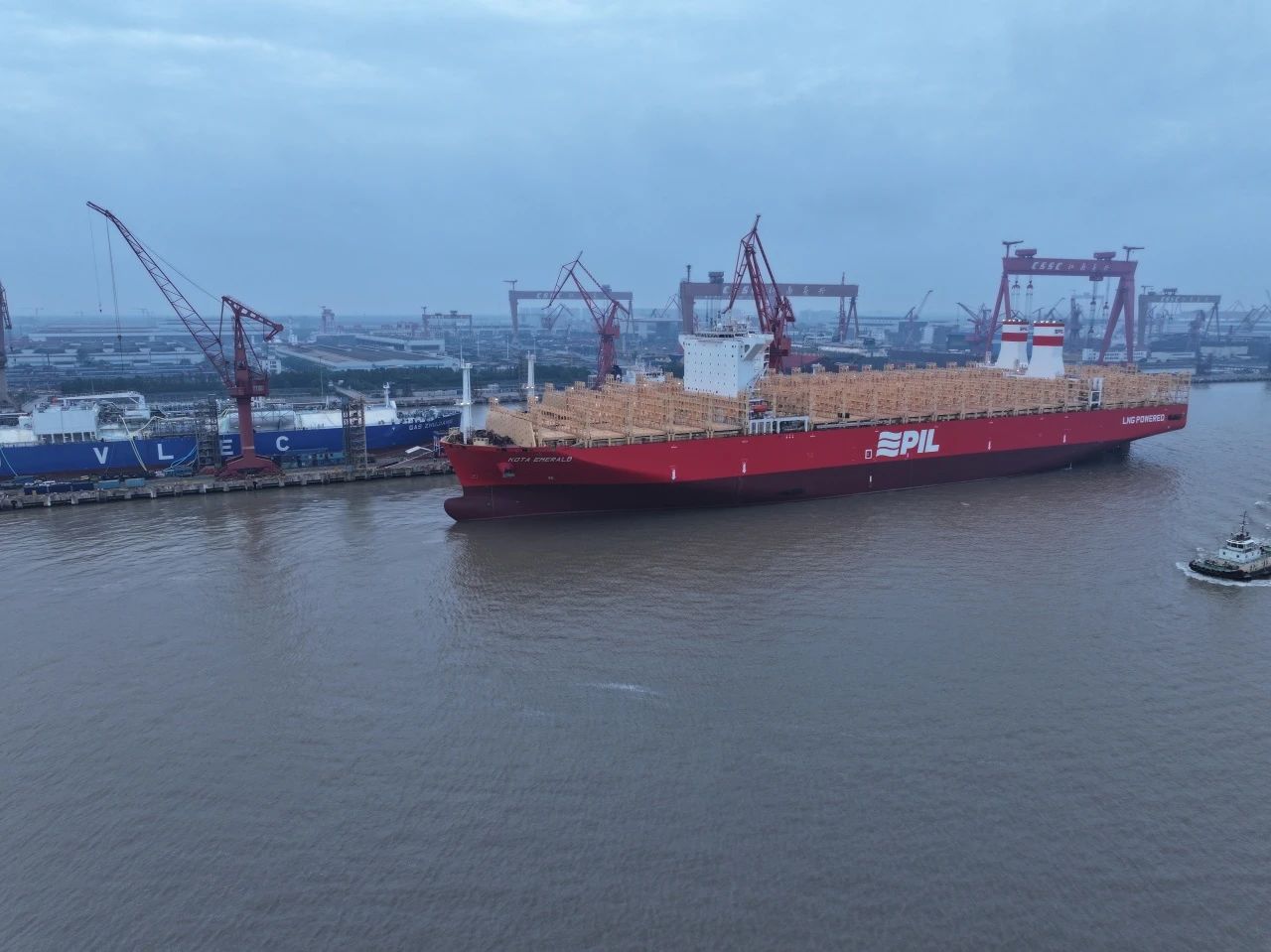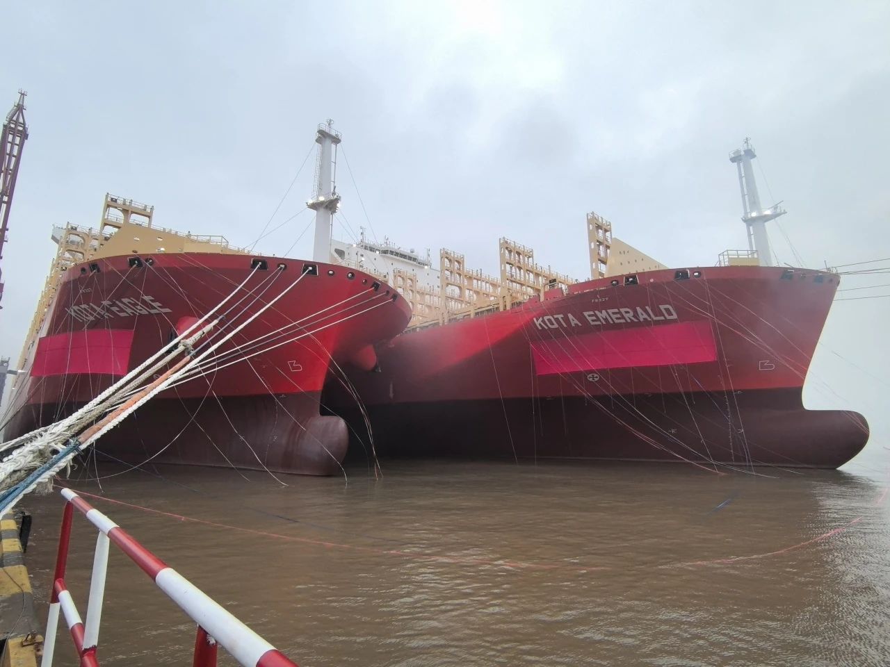 10月15日,中國(guó)船舶集團(tuán)旗下江南造船聯(lián)合中船貿(mào)易為太平船務(wù)建造的14000TEU液化天然氣(LNG)雙燃料動(dòng)力系列集裝箱船首制船“KOTA EAGLE(鷹城)”號(hào)和2號(hào)船“KOTA EMERALD(翠城)”號(hào)同日命名,其中“KOTA EAGLE(鷹城)”號(hào)于當(dāng)日簽字交付。