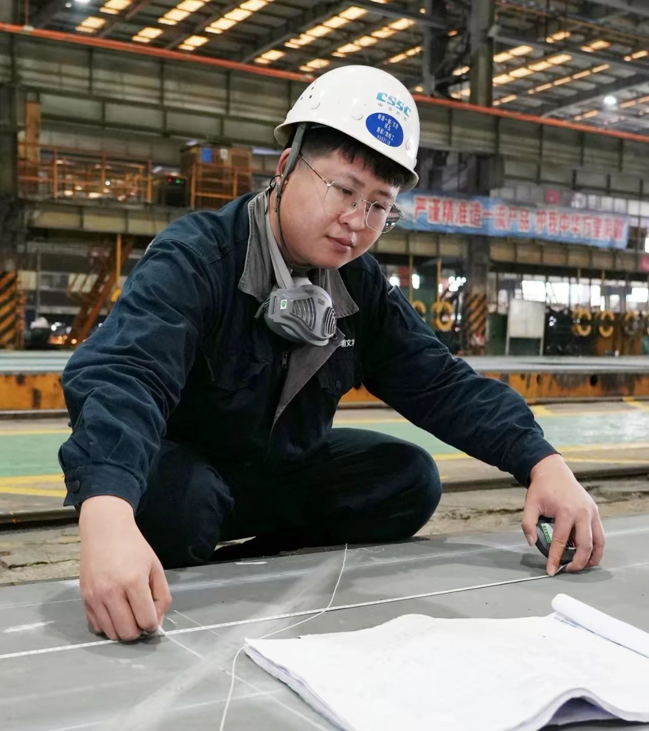 制造一部支持精控三班邱玉和他的同事們,就是這樣的一支團隊。他們從鋼板下料切割開始,始終跟進每一個生產(chǎn)環(huán)節(jié)的精度控制情況,隨時督促調(diào)整、修正,將船體各個結(jié)構(gòu)的定位基準誤差控制在毫米級。
