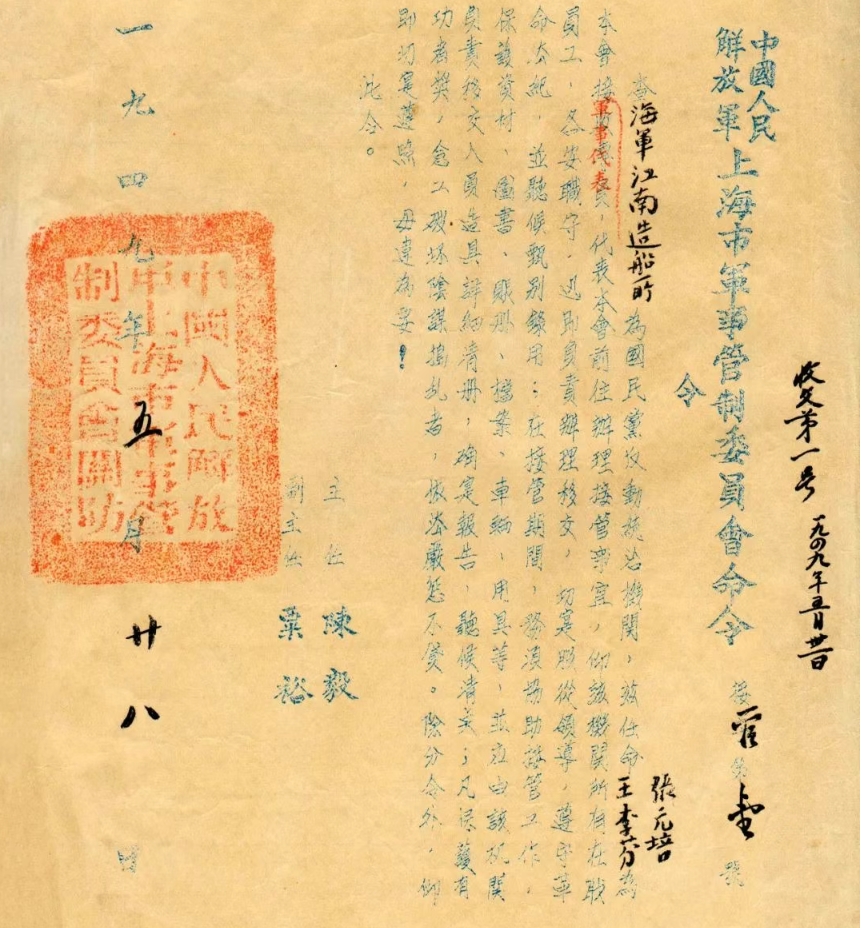 江南之于國家的戰(zhàn)略意義,周恩來曾這樣說過:“江南造船所是中國乃至亞洲最大的軍工企業(yè),要爭取在解放軍進(jìn)滬時(shí),安全、完整地交給人民?!?949年5月27日,上海解放。第二天上海市軍管會(huì)主任陳毅、副主任粟裕簽發(fā)第一號(hào)令,宣布接管海軍江南造船所。華東海軍司令員張愛萍來到江南造船所和工人們一起投入搶修造船設(shè)施的勞動(dòng)中,江南造船在廢墟上獲得新生。
