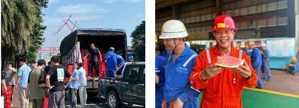 廣船國(guó)際始終將員工身心健康與安全生產(chǎn)放在首位,用科學(xué)調(diào)度、貼心保障的“組合拳”,撐起“清涼保護(hù)傘”。該公司向全體工會(huì)會(huì)員發(fā)放慰問(wèn)清涼飲料,做好防暑降溫工作,保障員工健康;所屬文沖修造常態(tài)化開展“送清涼”活動(dòng),各部門自發(fā)熬煮糖水、派發(fā)西瓜,讓“清涼”直抵崗位、暖到心間。