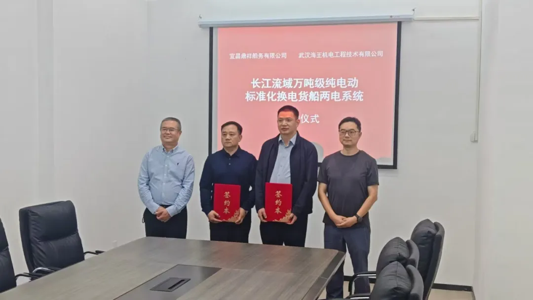 近日,中船集團(tuán)七一九所旗下武漢海王機(jī)電工程技術(shù)有限公司與宜昌鼎祥船務(wù)有限公司達(dá)成關(guān)鍵合作,成功簽訂4船(套)長江流域萬噸級電動標(biāo)準(zhǔn)化換電貨船兩電系統(tǒng)和智能系統(tǒng)供應(yīng)合同,標(biāo)志著雙方在綠色智能船舶裝備領(lǐng)域的合作正式落地。