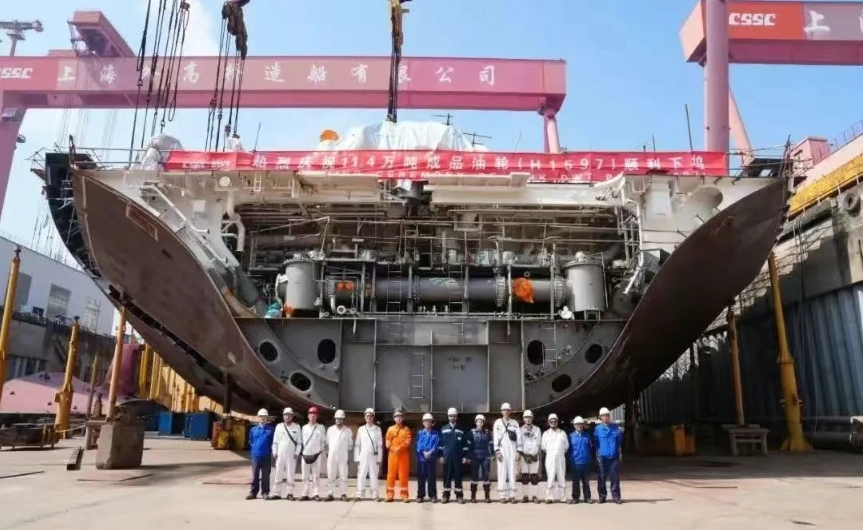 8月4日,為希臘Performance Shipping公司建造的11.4萬(wàn)噸成品油船順利下塢。該船建造期間,外高橋造船項(xiàng)目團(tuán)隊(duì)以分總段完整性下塢為目標(biāo),緊扣“三取消、四清零、工序前移”管理手段開啟總組工作。截至下塢,該船艉半船分段完工率實(shí)現(xiàn)100%。