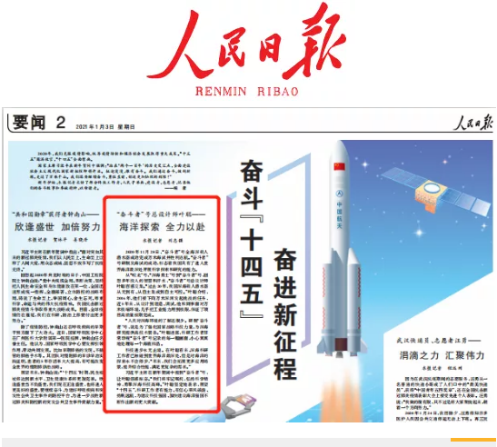 1月3日,人民日報在要聞二版【奮斗“十四五” 奮進新征程】專題報道中,以“海洋探索 全力以赴”為題刊發(fā)了對中國船舶集團七〇二所副所長“奮斗者”號總設(shè)計師葉聰?shù)膶TL。