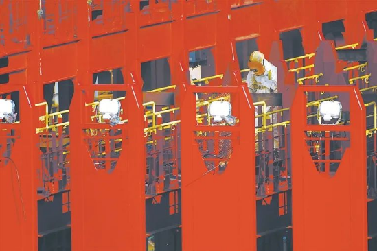 施工人員正在焊接“長(zhǎng)益”號(hào)的綁扎橋