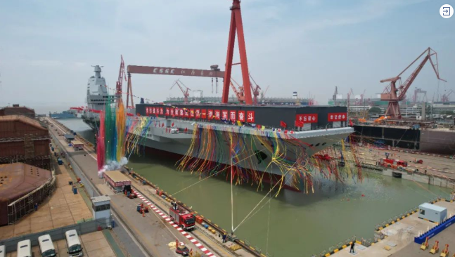 2022年6月17日,我國第三艘航空母艦下水命名儀式在中國船舶集團有限公司江南造船廠舉行。經(jīng)中央軍委批準(zhǔn),我國第三艘航空母艦命名為“中國人民解放軍海軍福建艦”,舷號為“18”。福建艦是我國完全自主設(shè)計建造的首艘彈射型航空母艦,采用平直通長飛行甲板,配置電磁彈射和阻攔裝置,滿載排水量8萬余噸。該艦下水后,將按計劃開展系泊試驗和航行試驗。福建艦順利下水標(biāo)志著我國海軍裝備現(xiàn)代化建設(shè)取得了又一重大的歷史性突破,對于進一步提升我國海軍維護國家海洋權(quán)益的能力具有重要意義。