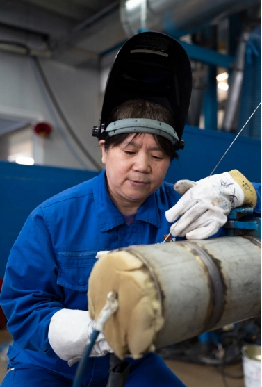 至今,朱瑞霞已經(jīng)參與了“遠(yuǎn)望”系列船、“雪龍2”號、南昌艦等國家重點(diǎn)項(xiàng)目的焊接工作。她說,當(dāng)時(shí)有人高度評價(jià)稱:“你焊的管子可以免檢?!钡珘毫σ搽S之而來,“我當(dāng)時(shí)就想,船一出海就是半年,我的焊接要是出問題,就是人命關(guān)天。”正是因?yàn)檫@種“軸”,朱瑞霞先后攻克了鎳銅管焊接變形、HDR不銹鋼焊接、鈦合金焊接等一系列高難度問題。她主導(dǎo)研發(fā)了十余項(xiàng)焊接專利技術(shù),攻克了薄壁管道焊接難題,還創(chuàng)新研制了特有的工裝,獲得外國專家的認(rèn)可和推廣應(yīng)用。